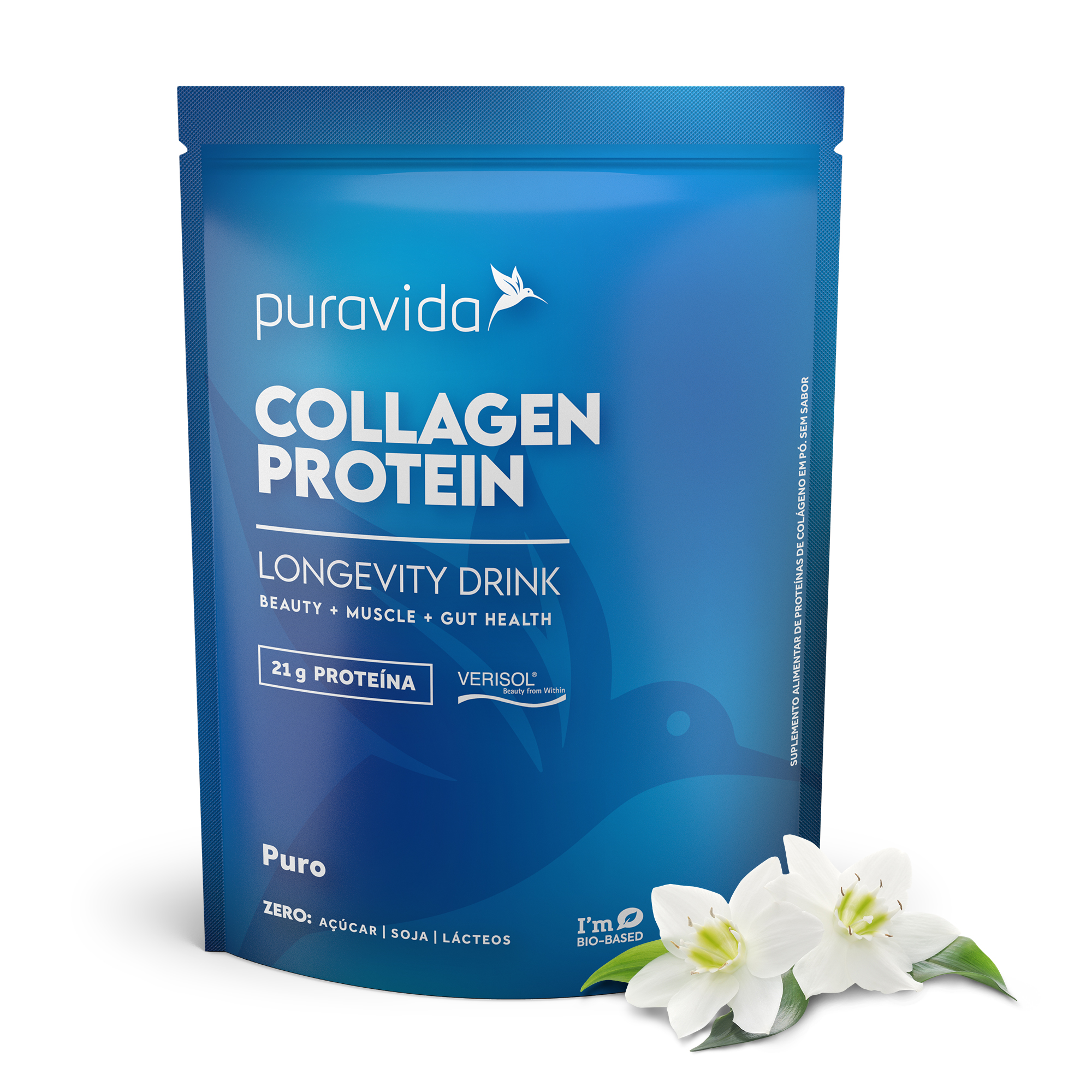 O Collagen Protein é feito com a tecnologiaalemã Verisol®, comprovada cientificamentecomo o melhor colágeno do mundo para a pele,